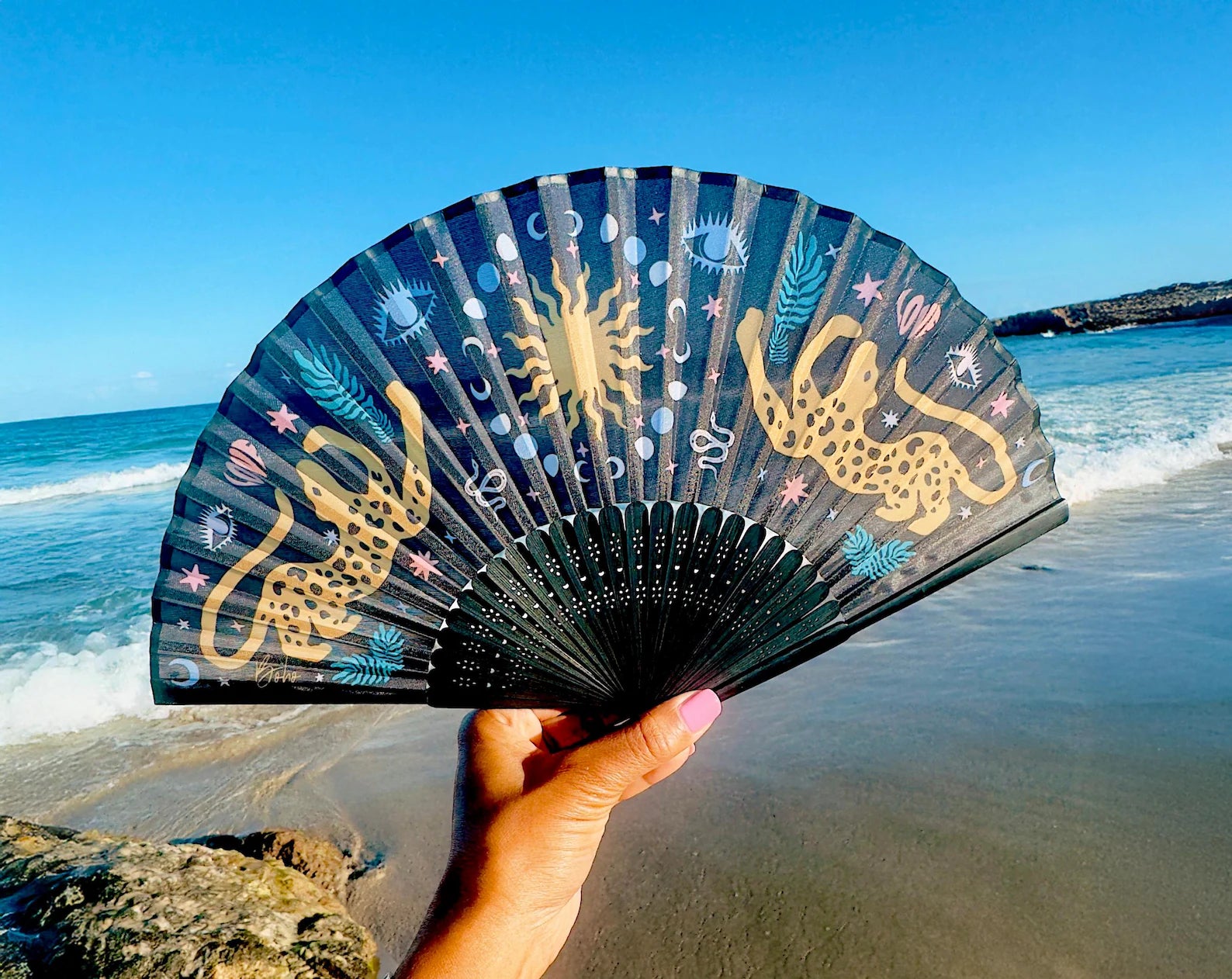 Our Handheld Folding Fan is the perfect blend of elegance and practicality for warm days and stylish moments. Made with durable materials and a smooth folding mechanism, this portable fan slips easily into your purse or pocket, making it ideal for travel, outdoor events, weddings, festivals, or daily use. The add a graceful touch to any outfit while providing a refreshing breeze whenever needed. Whether you're strolling through a summer market or at the beach, our fan delivers comfort and charm in one beautiful accessory.