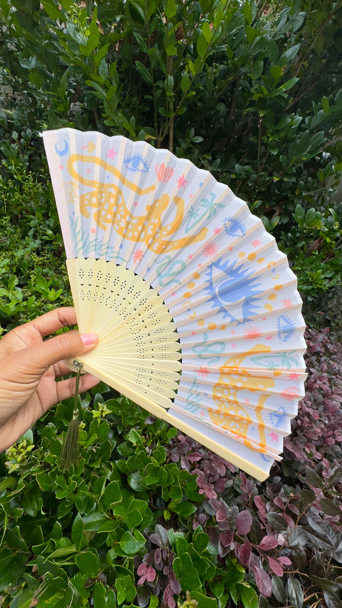 Our Handheld Folding Fan is the perfect blend of elegance and practicality for warm days and stylish moments. Made with durable materials and a smooth folding mechanism, this portable fan slips easily into your purse or pocket, making it ideal for travel, outdoor events, weddings, festivals, or daily use. The add a graceful touch to any outfit while providing a refreshing breeze whenever needed. Whether you're strolling through a summer market or at the beach, our fan delivers comfort and charm in one beautiful accessory.